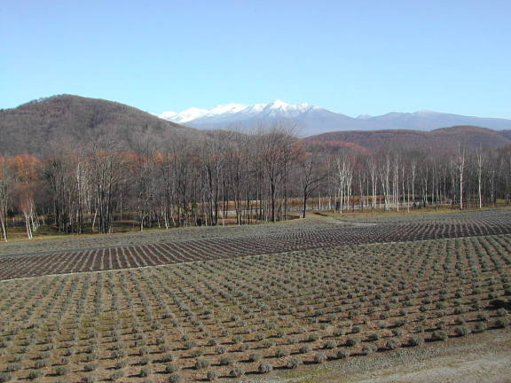 富良野の入り口=ラベンダーの森に到着。ここは夏に来るところ。何かあるのではと期待してきても、やはり何もない。ラベンダーは花期を終えその畑はきれいに耕され、茶色の土肌もあらわに雪を待っている。