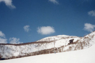 (写真:藻岩山を遠望・左の屋根はKITARA・右は豊平館−97.4.19)