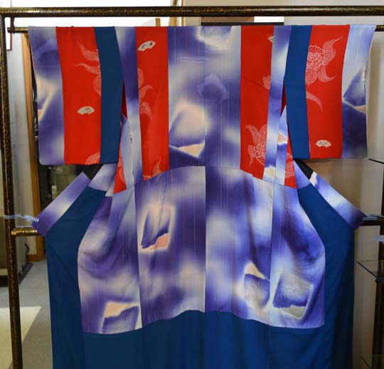 中でも絵羽に柄付け構成された浴衣は、盛んであった西馬音内盆踊りの為に特別に注文されたといわれる。